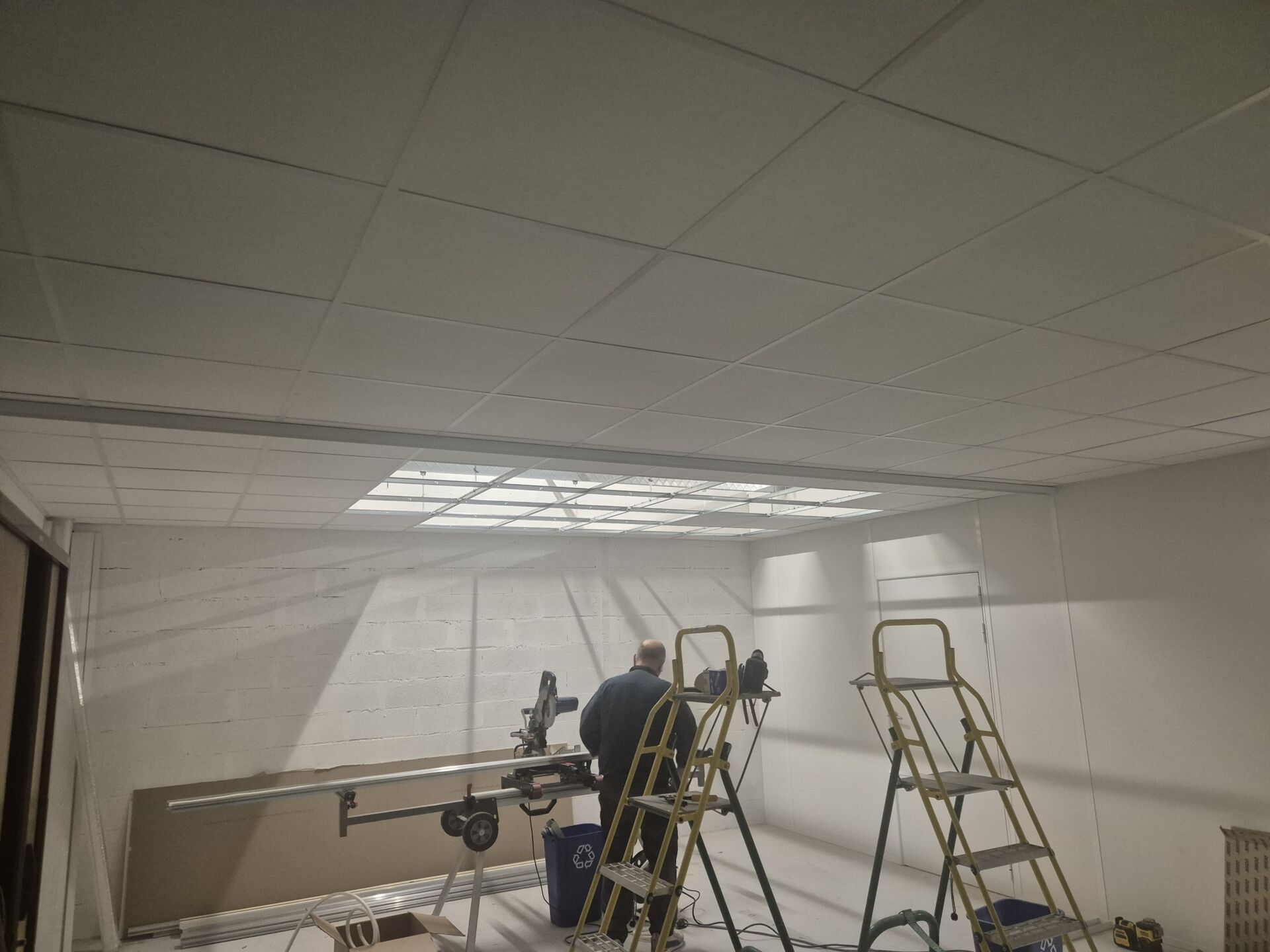 Cette intervention technique allie esthétique, performance acoustique et intégration fonctionnelle des réseaux dans un environnement professionnel repensé.