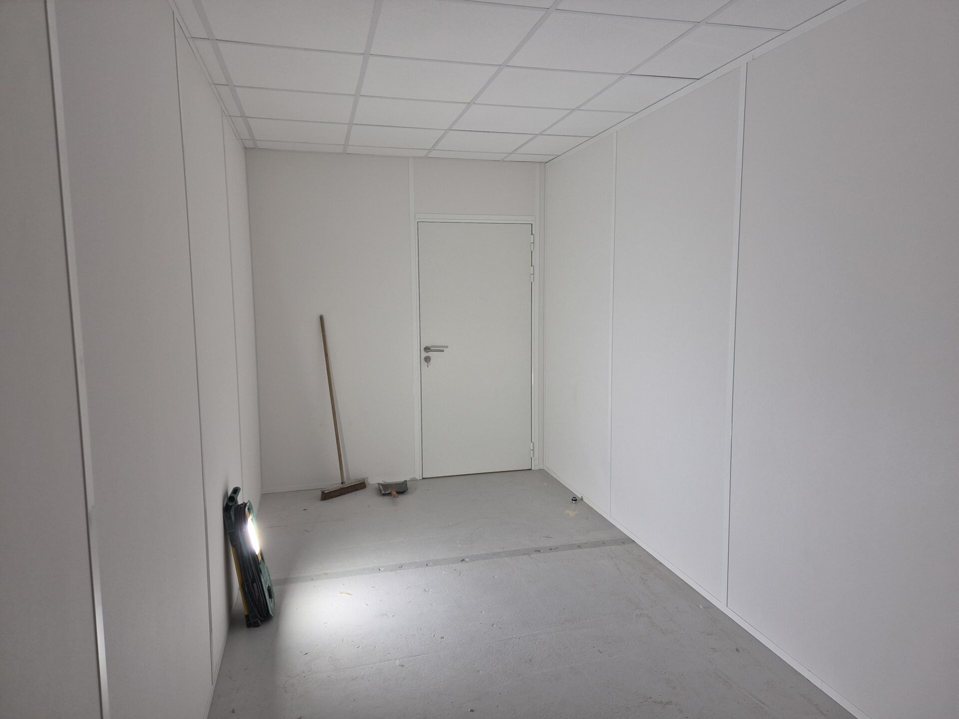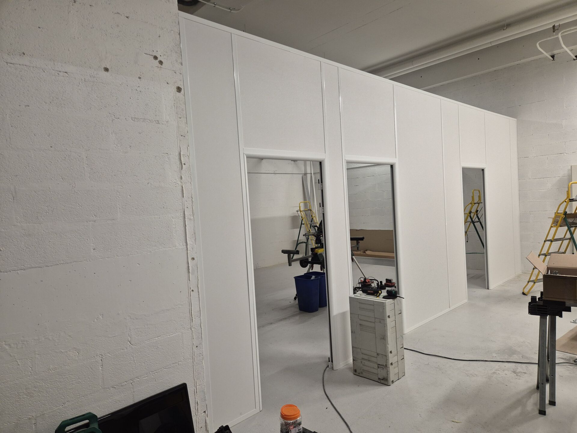 À Dardilly près de Lyon, PM Grognet a coordonné chaque phase du montage : traçage au sol, ancrage des profilés, ajustement des modules et intégration des portes. Les finitions laquées blanches offrent un rendu soigné et durable, adapté à un environnement professionnel.